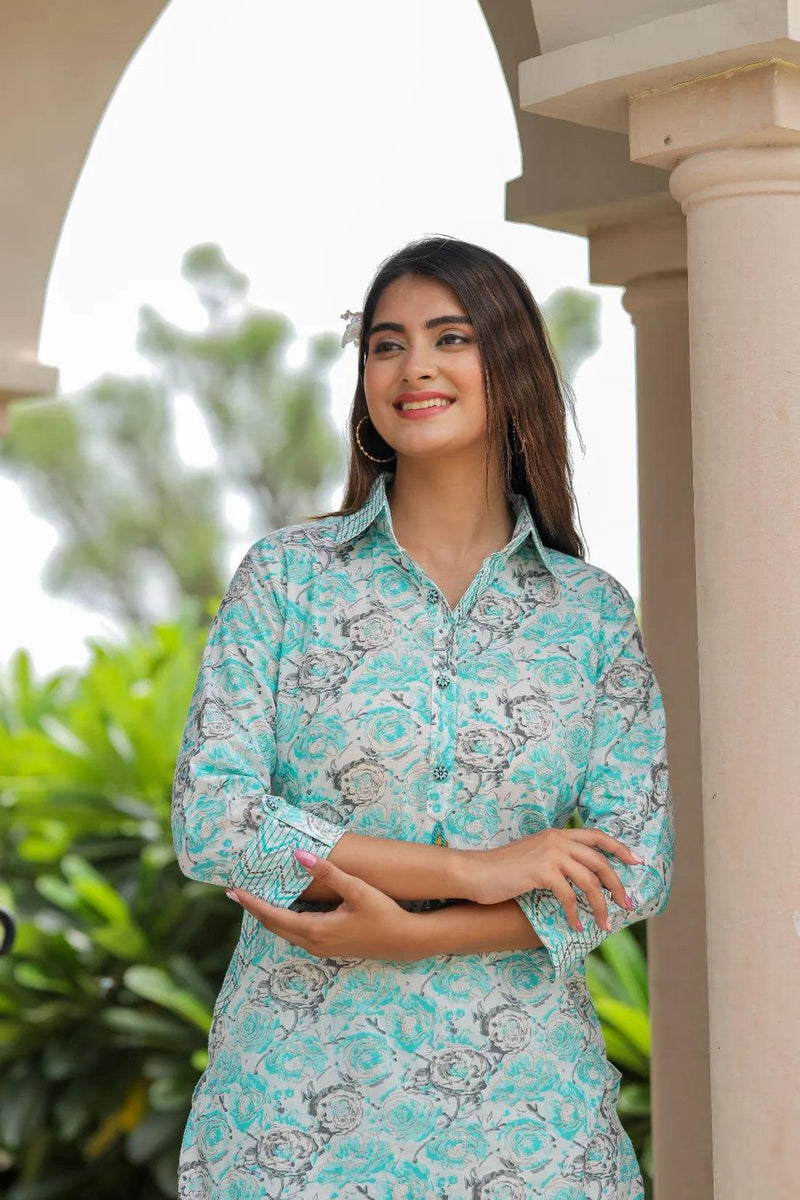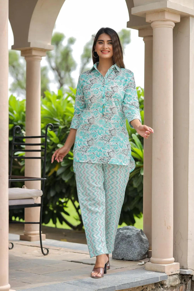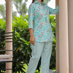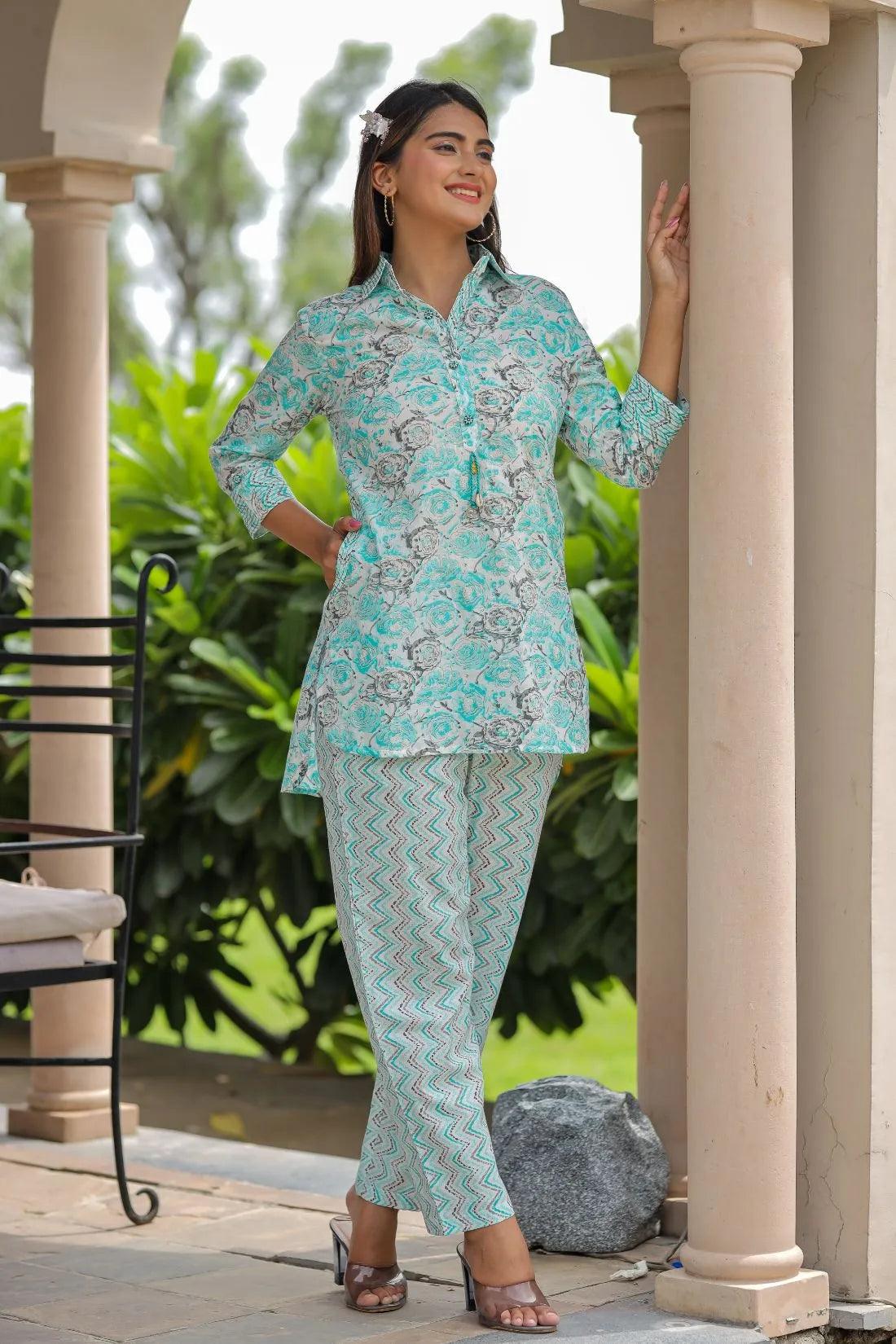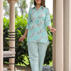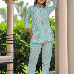 Bairaj Cotton Printed Women Cord Set with Designer Buttons and Cotton Pants