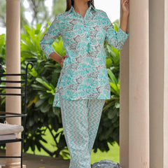 Introducing our must-have Printed Cord Set paired with matching bottoms, designed for effortless style and comfort during the sunny days of summer. Our Cord Set Crafted from premium cotton fabric and adorned with a charming print, The breathable cotton fabric ensures all-day wearability, Yes, You can wear our Cord Sets all day long without any irritation, making it ideal for both casual outings and special gatherings.