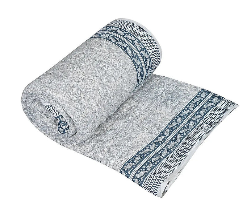 Bairaj presents an exclusive range of beautiful cotton blockprint Quilts with mesmerizing colors, primarily hailed from royal Rajasthan, its natural dyes and art of handblock make these curated assortment a must have for your bedding collection.