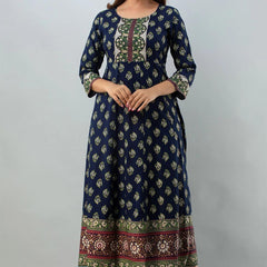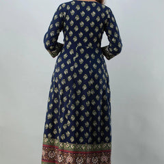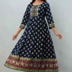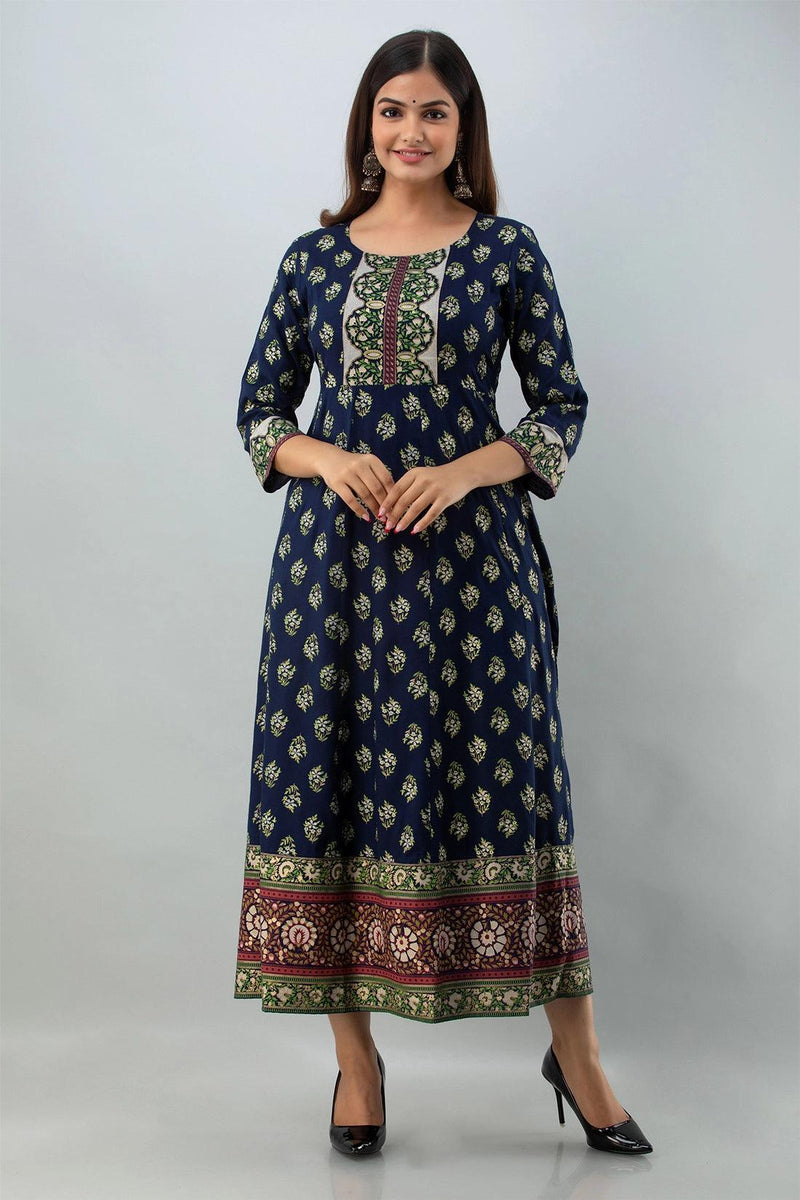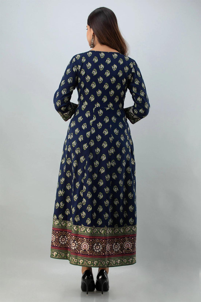 Blue Printed Viscose Rayon Anarkali Kurta for Women