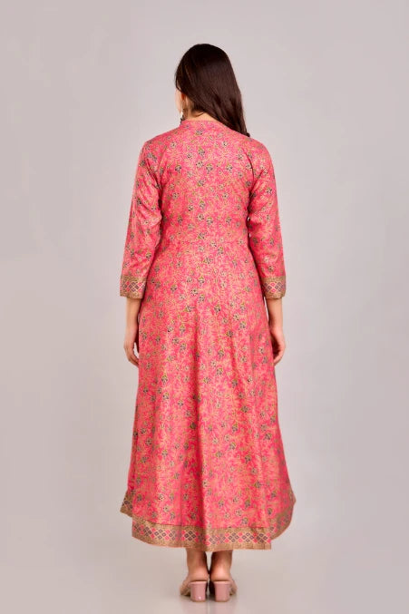 Bairaj Women's Designer Peach Anarkali Printed Gown