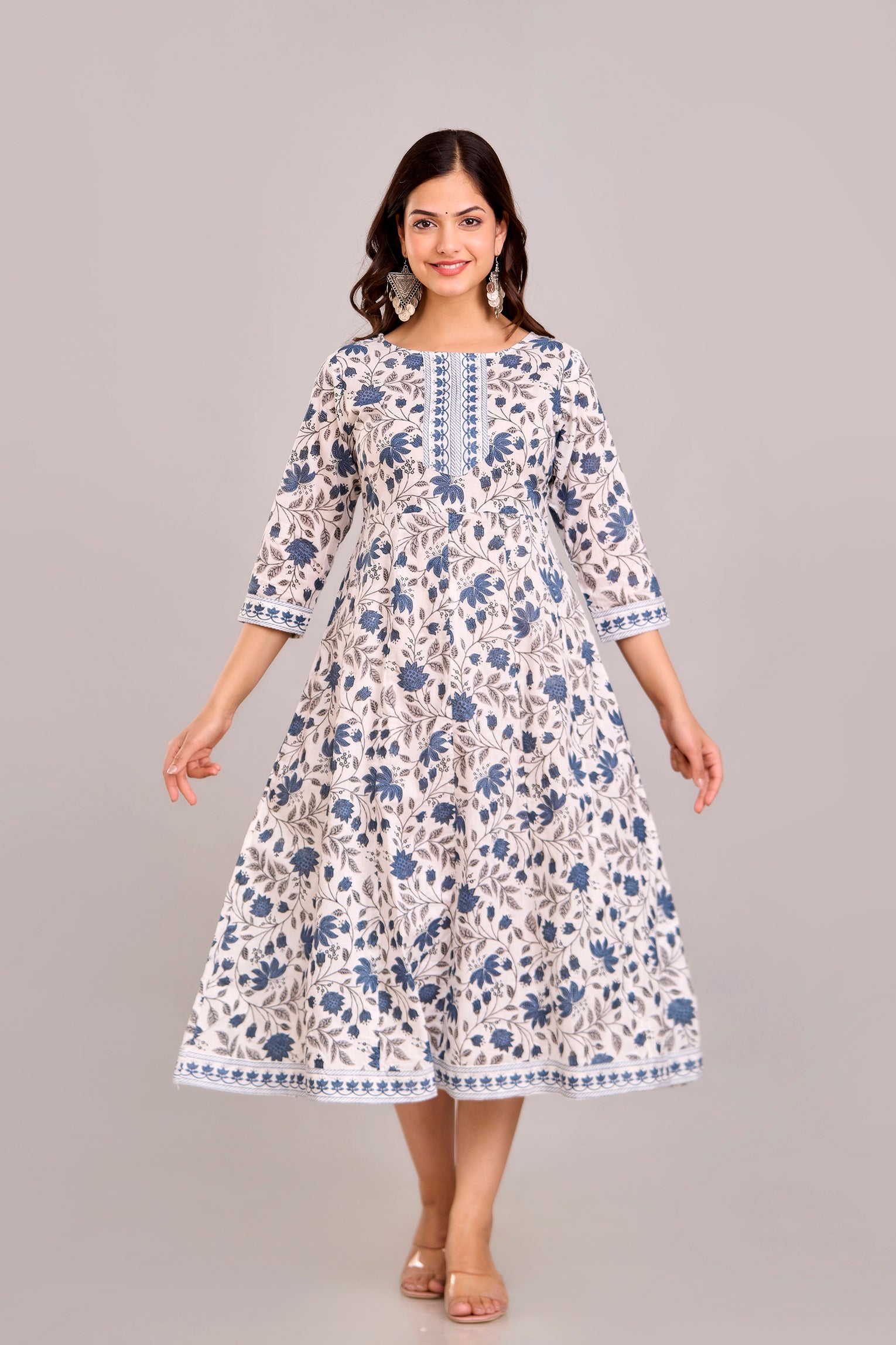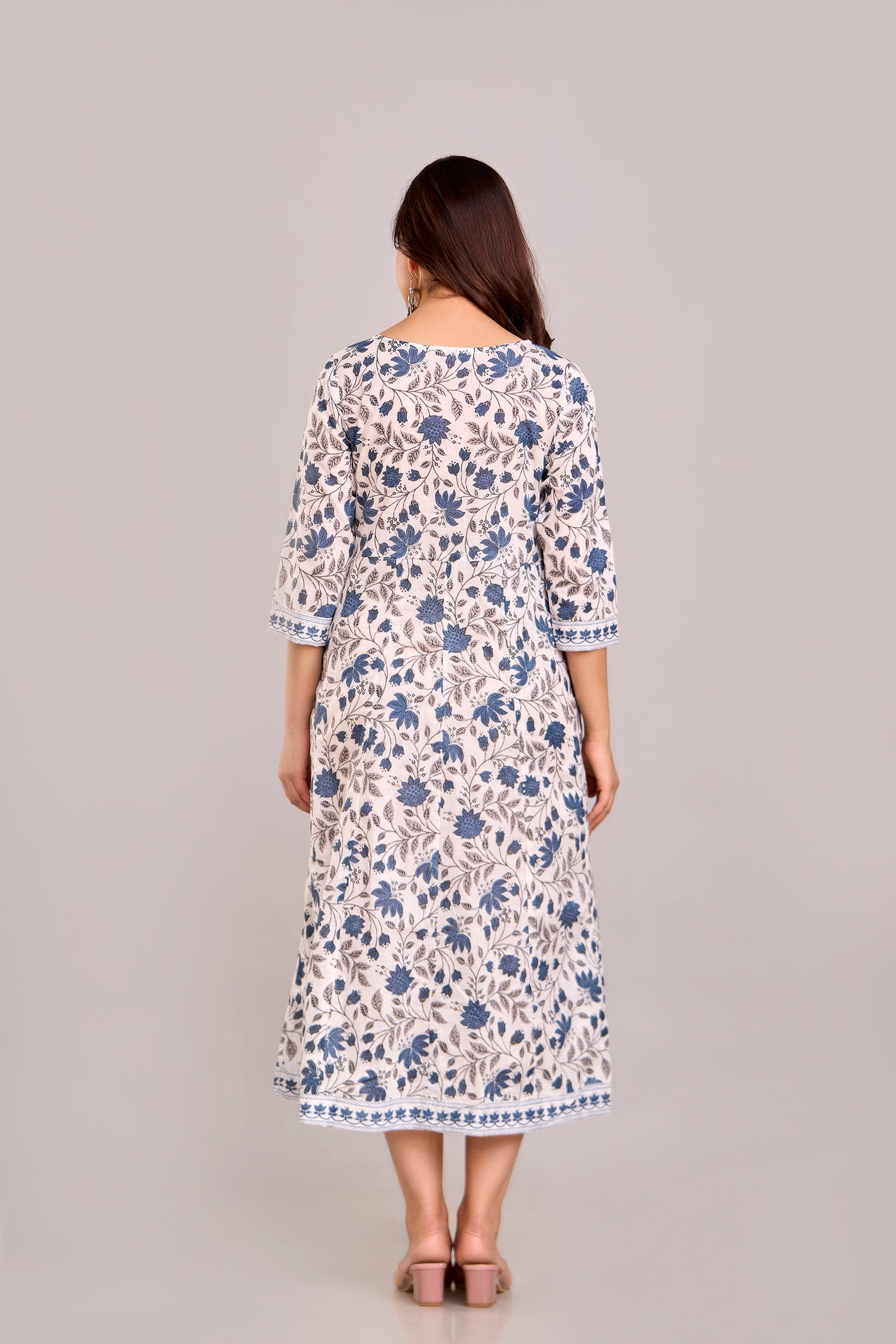 • Classic Neckline & Sleeves: Typically features a round or V-neck with 3/4th or full sleeves for timeless appeal.