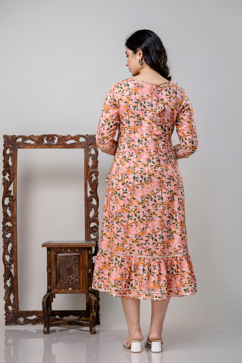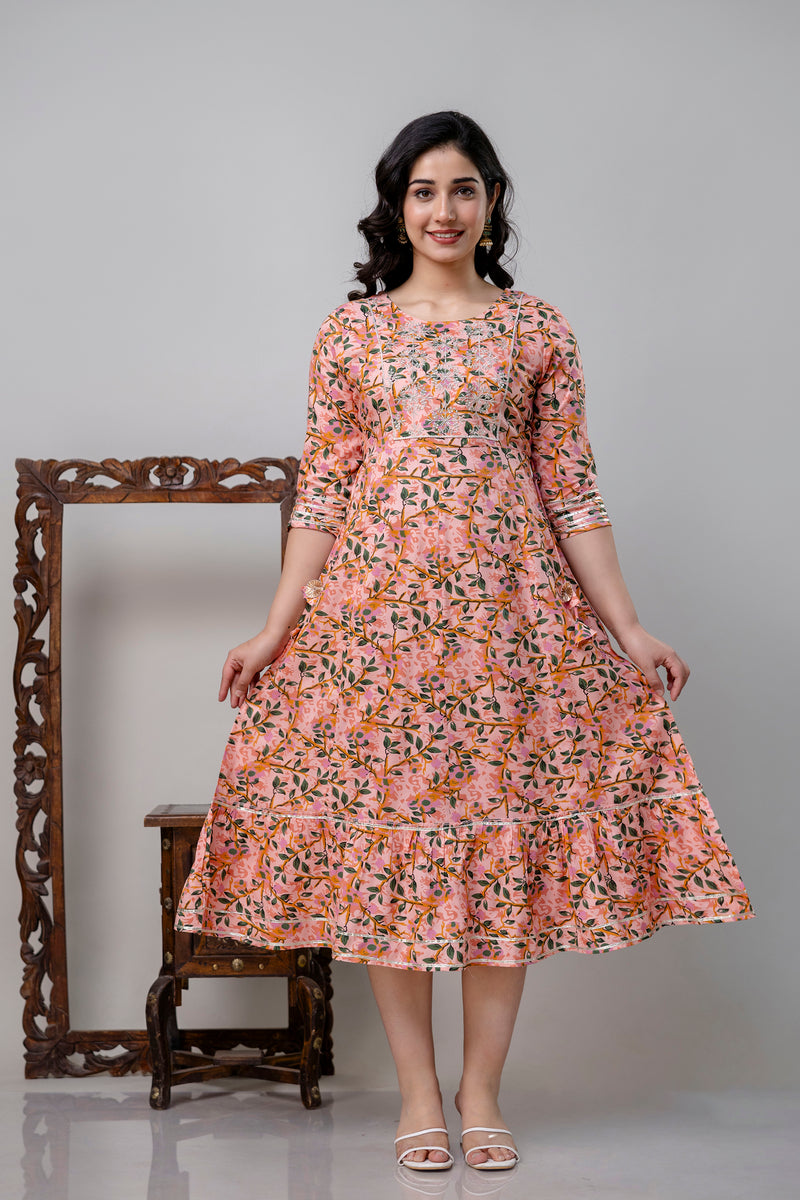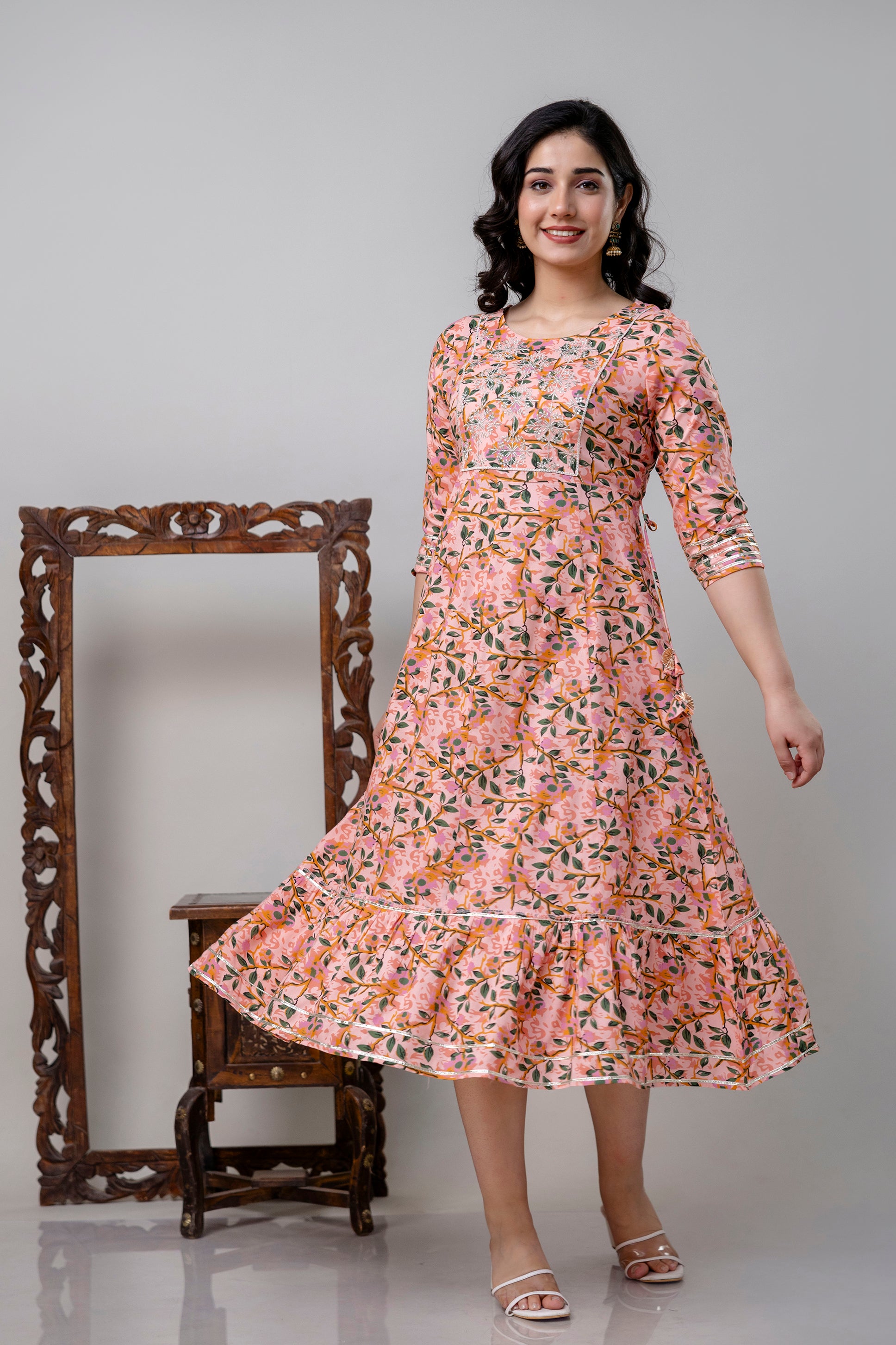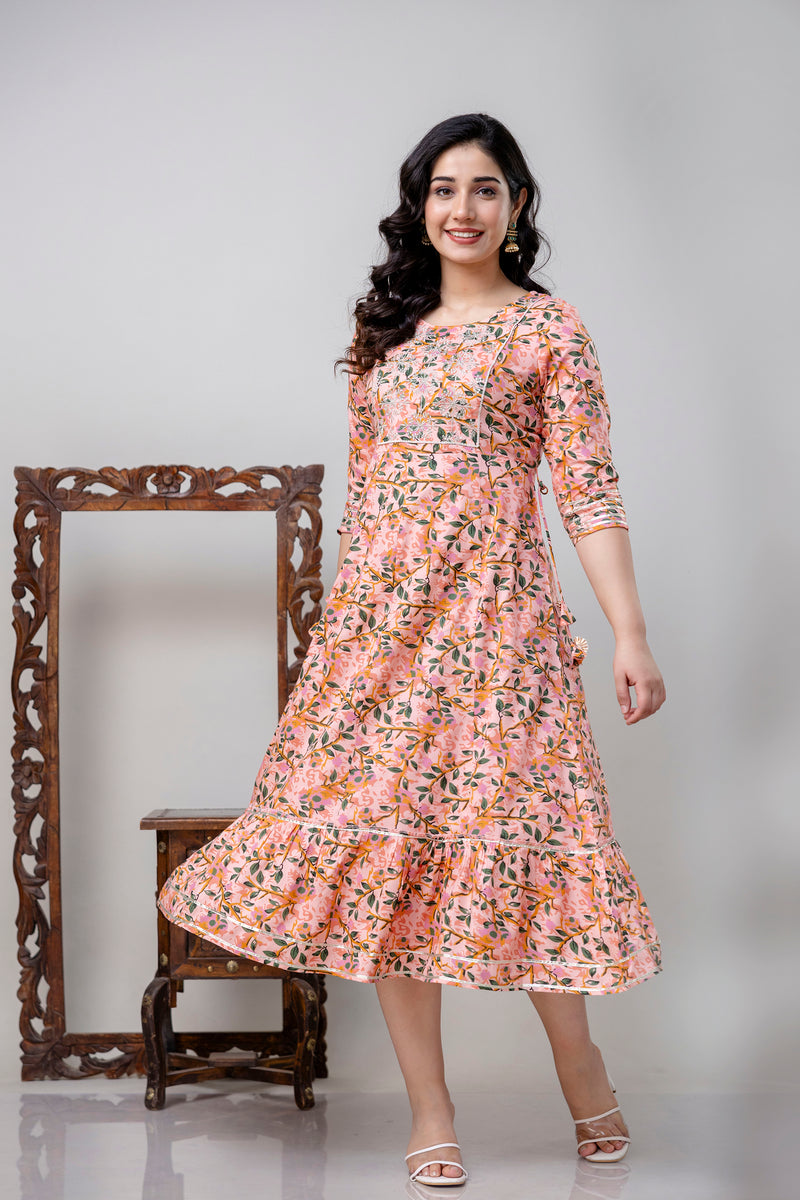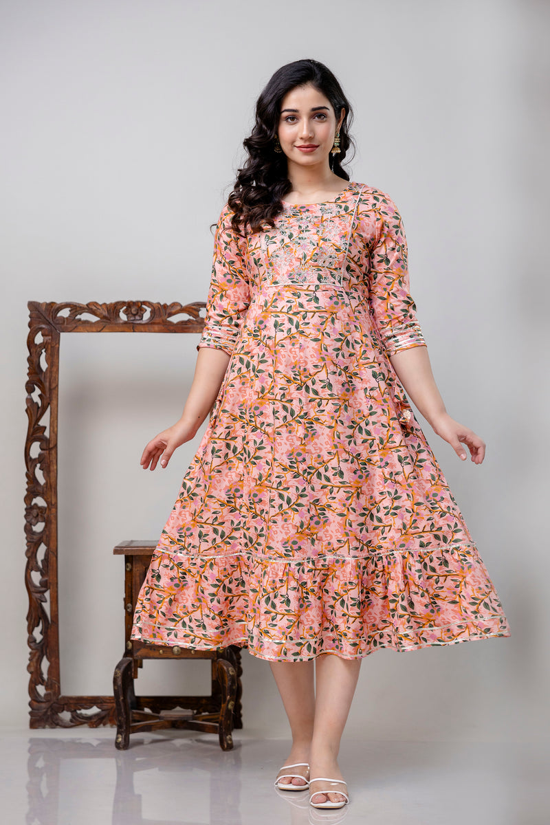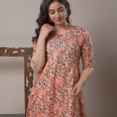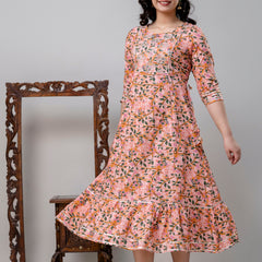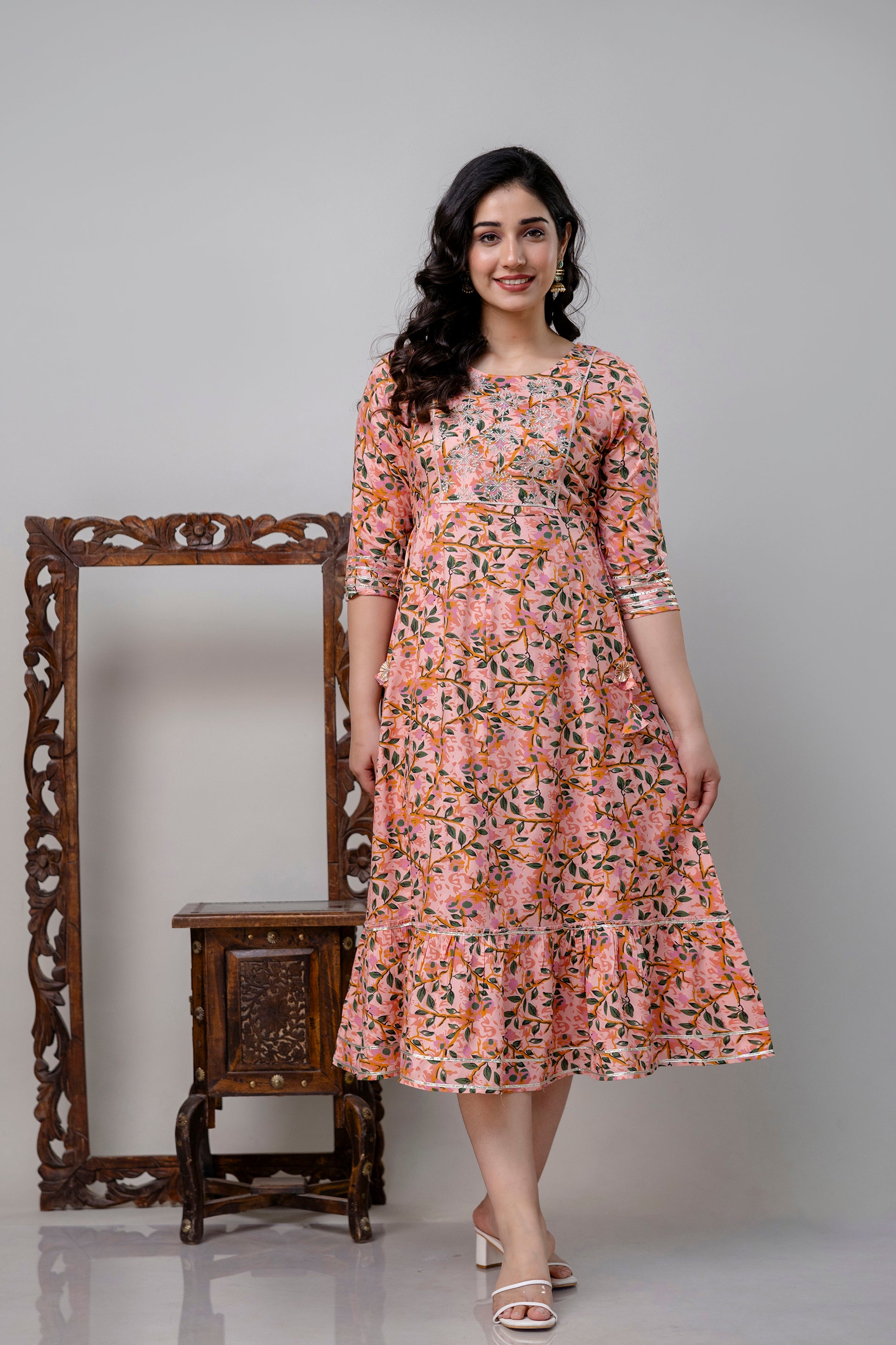 Step into timeless elegance with this Ethnic Motifs Printed Anarkali Kurta, adorned with delicate floral patterns and intricate mirror work. Designed with flared sleeves for a graceful silhouette and crafted from lightweight, breathable fabric, it offers both comfort and festive flair. Whether you're attending a celebration or embracing everyday grace, this kurta blends tradition and trend effortlessly.