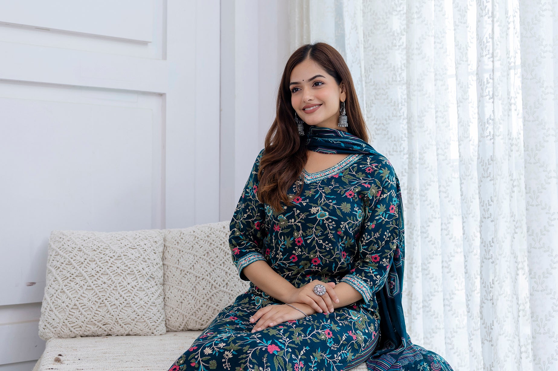 Women Printed Kurta and Pant Set With Dupatta | Ethnic Set | Dupatta Set | Kurta Set