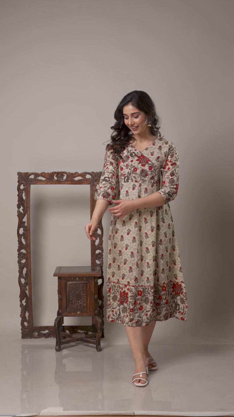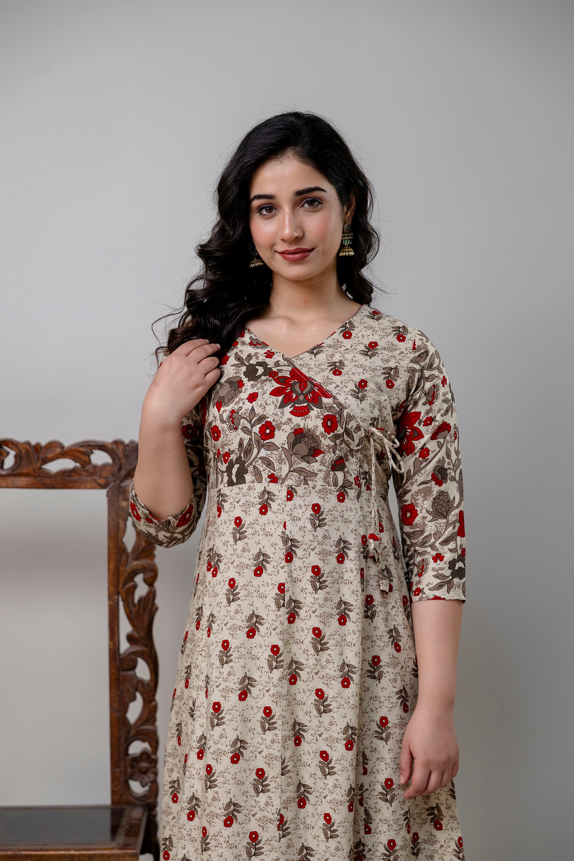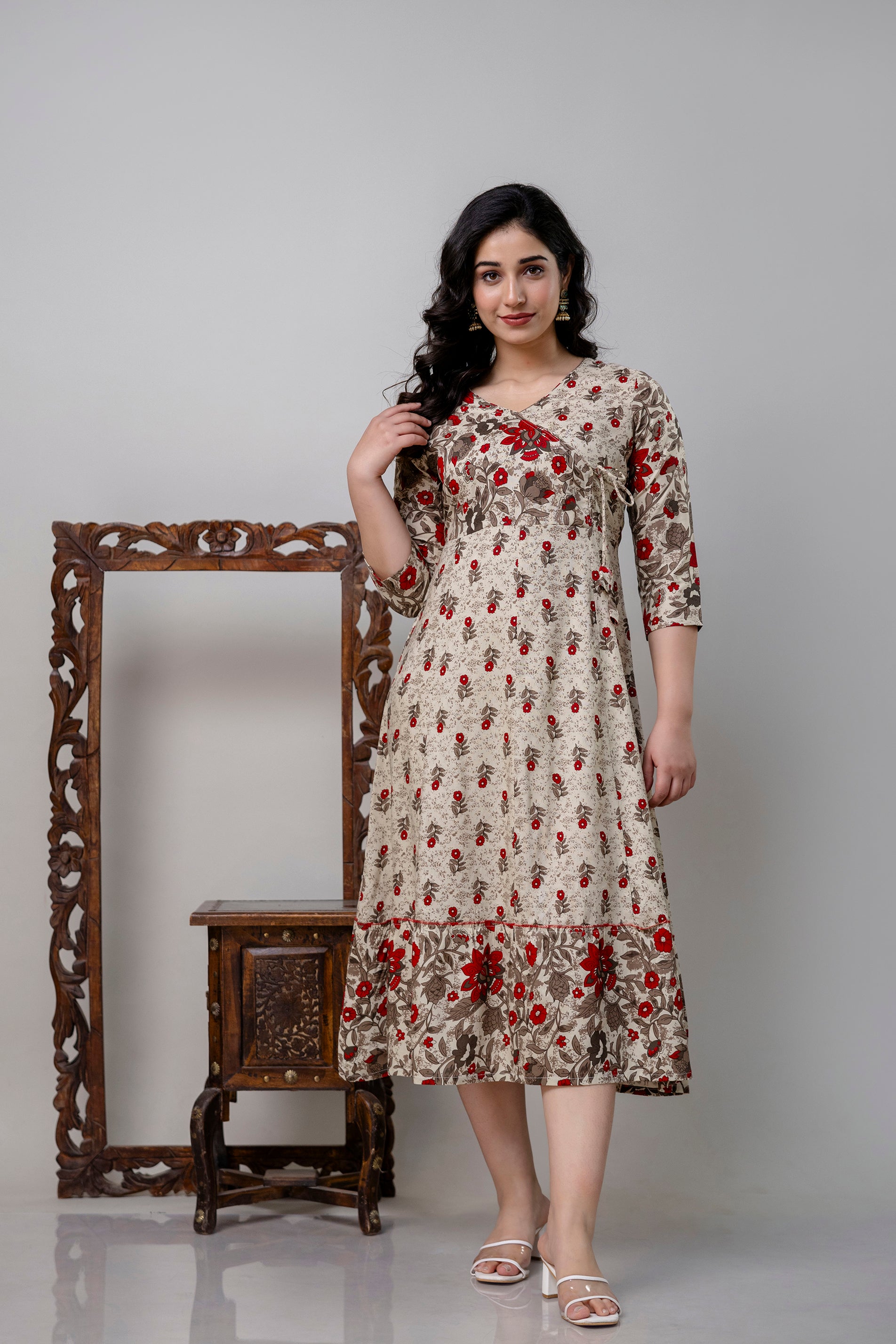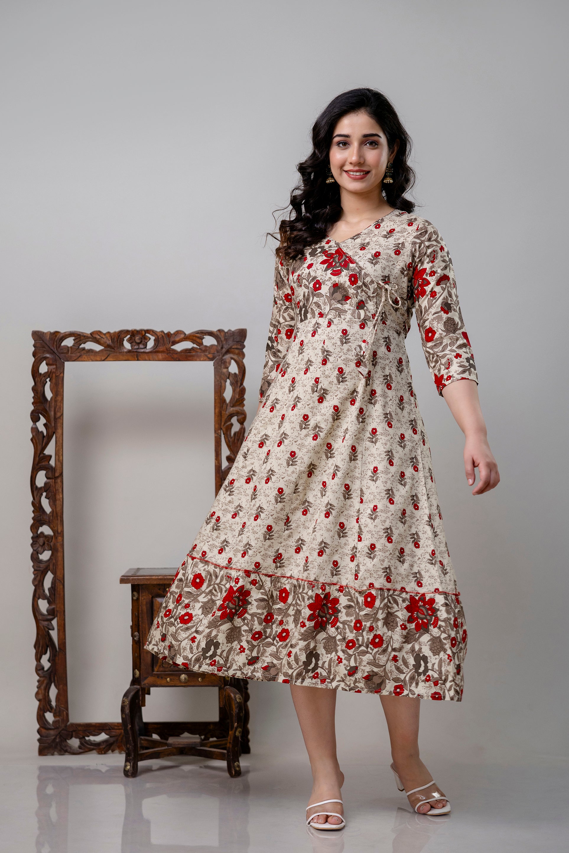 Step into timeless elegance with our Women's Pure Cotton Floral Print Beige Maxi Dress. Designed for both comfort and style, this maxi dress features a soft, breathable cotton fabric that keeps you cool throughout the day.