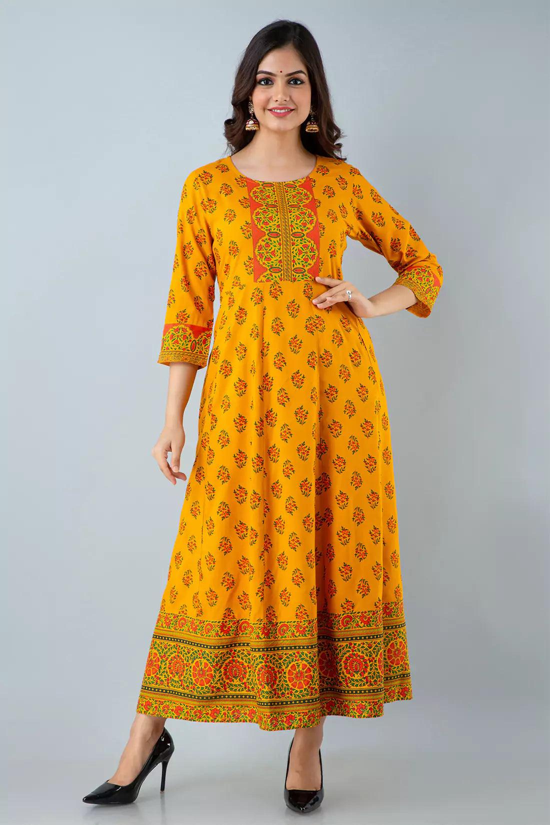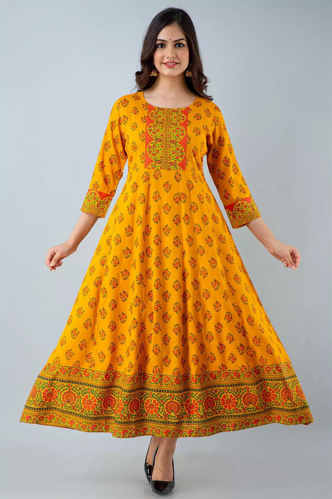 The Fabric used in creating our Anarkali Kurta is Finest Quality Viscose Rayon that offers you Softness, Comfort, and Beauty.