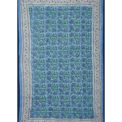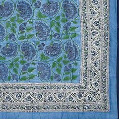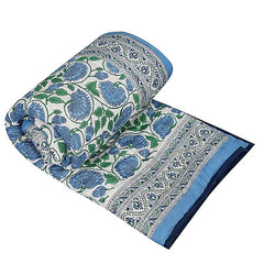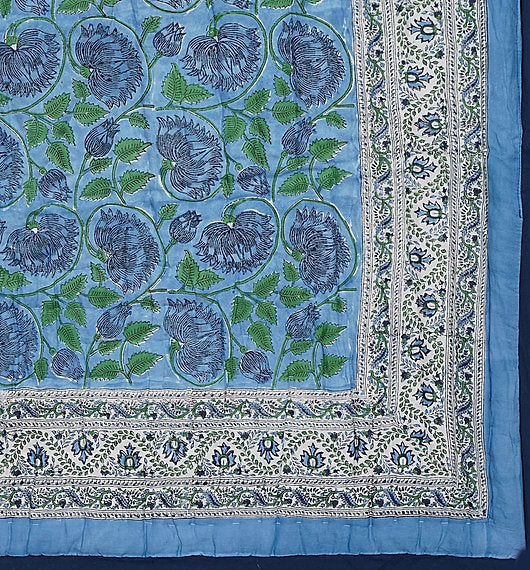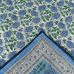 "Lotus Blue Jaal" Hand Block Printed Quilt
