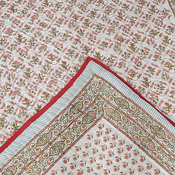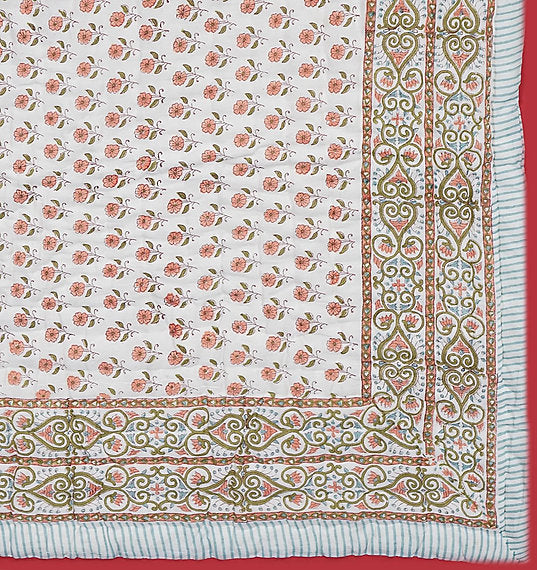"Peach Buti" Hand Block Printed Quilt