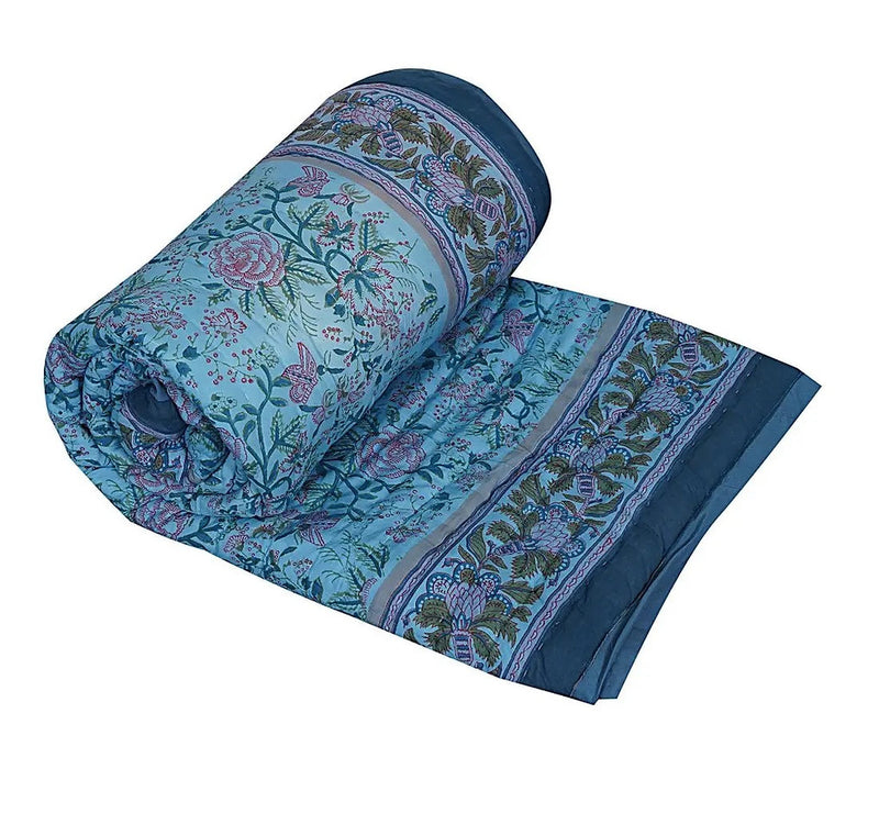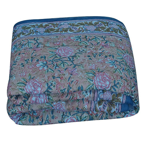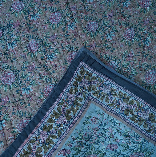 "Rose Bagh" Hand Block Printed Quilt