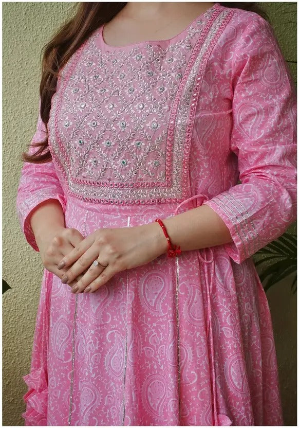 Women’s Cotton Blend Ethnic Motif Printed Anarkali Kurta